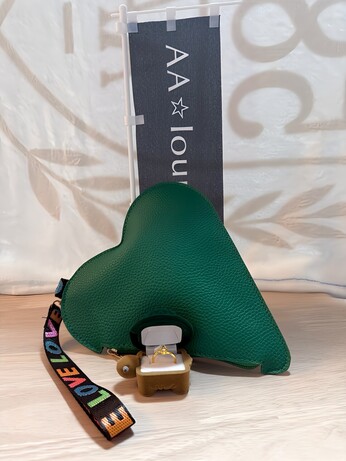 ①【新商品】 グリーンハート型💚ポーチ&Aジュエリー(ゴールド)💎LOVEセット