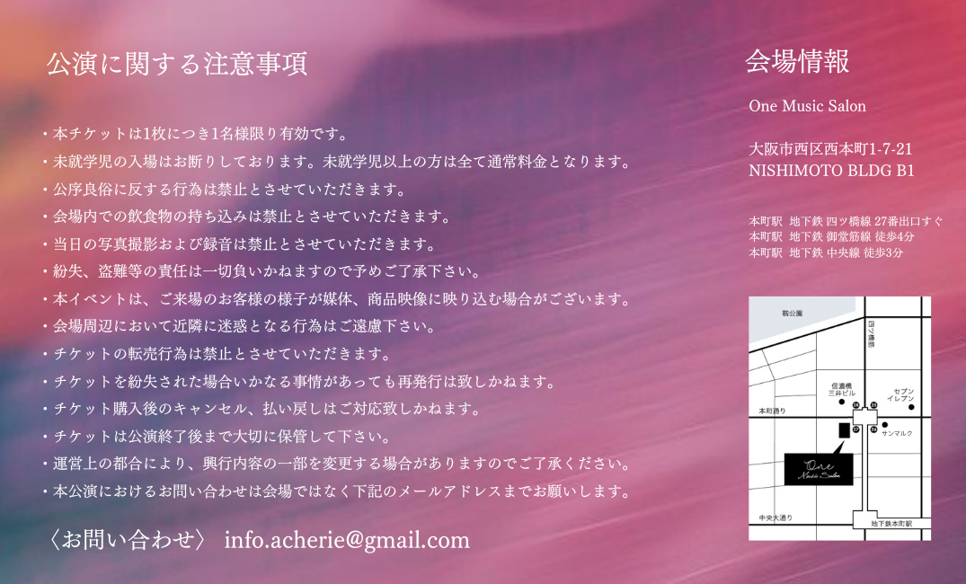 ・本公演におけるお問い合わせは会場ではなく下記のメールアドレスまでお願いします。