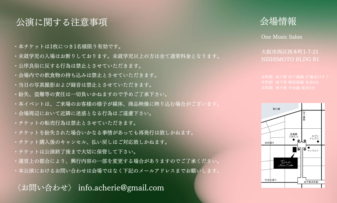 ・本公演におけるお問い合わせは会場ではなく下記のメールアドレスまでお願いします。