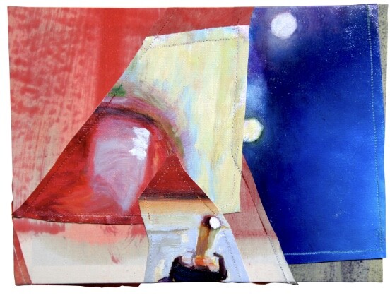 キャンバス、油彩、ミシン糸