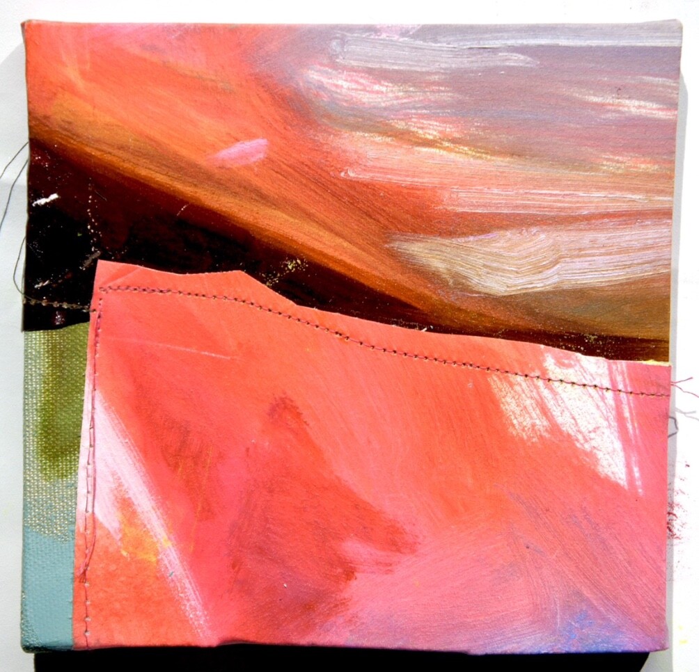 キャンバス、油彩、ミシン糸