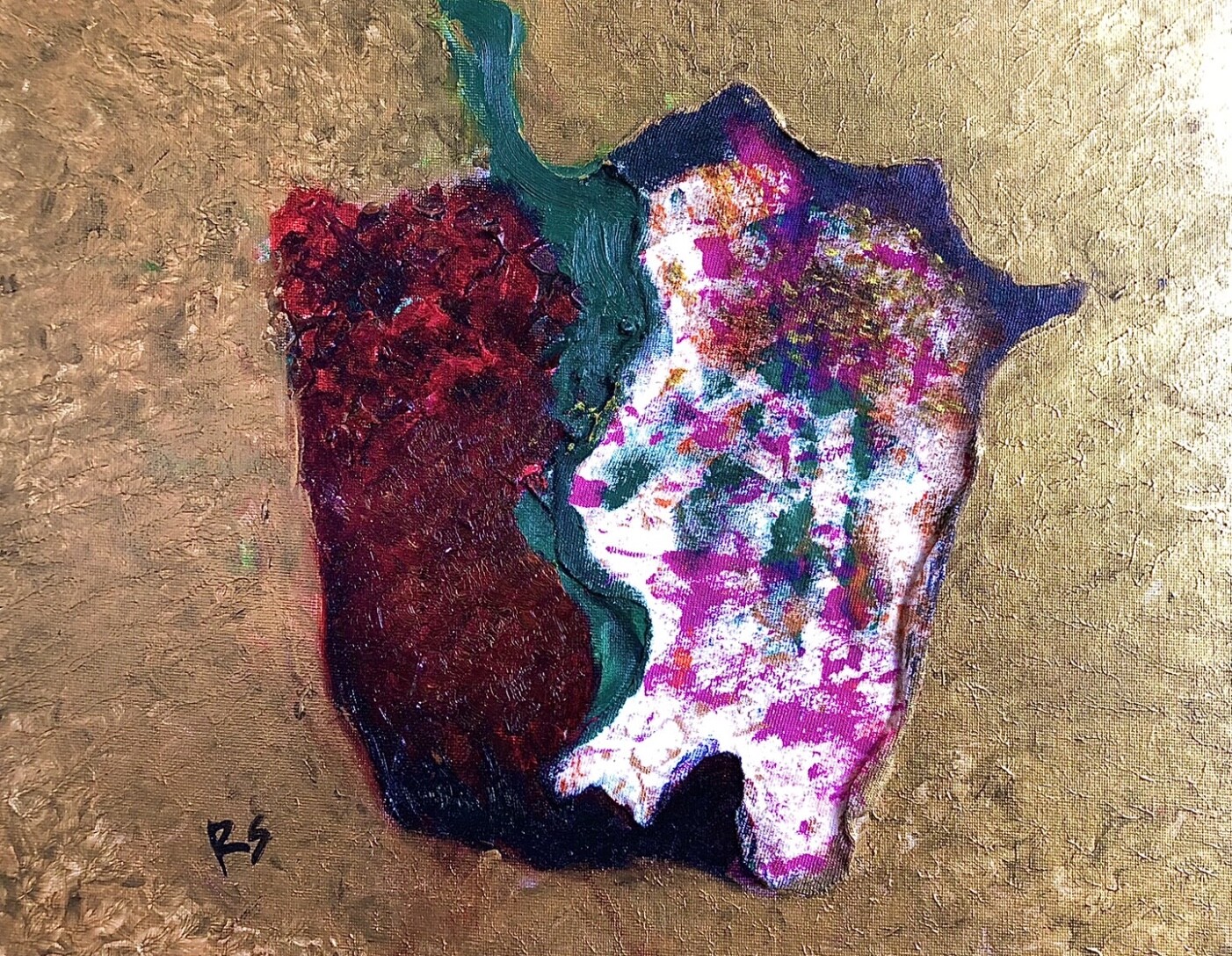 油彩絵具、アクリル絵具、布、キャンバスボード