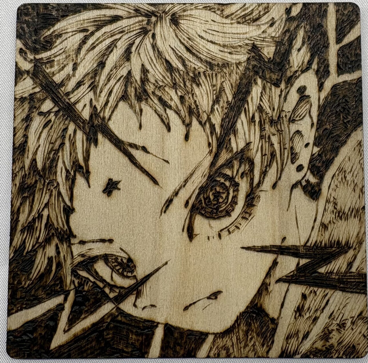 ウッドバーニングとは:電熱ペン(ハンダゴテ)の熱で木材の表面を焦がし、絵や文字、模様を描く技法(焦がし絵)
