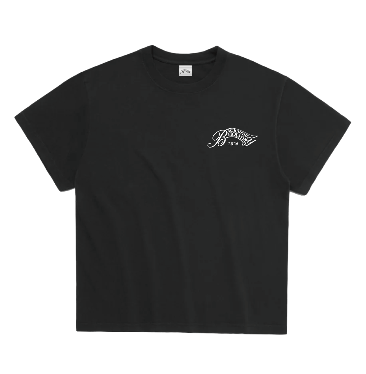 デザインは左胸にワンポイント、BTTHのスタートイヤーである2026の数字が入ったロゴになります。カラーは2種。Washed BlackとOptic Whiteになります。また、首元にはBTTHのオフィシャルタグが添付されます。活版印刷によるBTTHタグ、BTTHのロゴがプリントされたパッケージに商品が梱包されます。