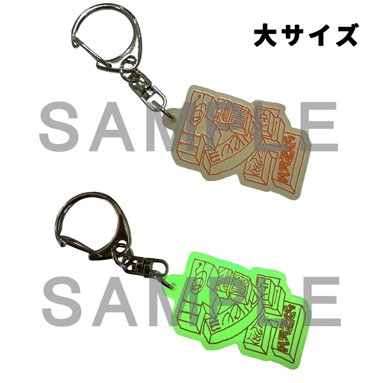 前回買い逃してしまった方にもお楽しみいただけるよう、キーチェーンは「通常サイズ2種」と「サイズアップキーチェーン」のいずれか1点をお買い上げの方に蓄光ステッカーをお付けします。