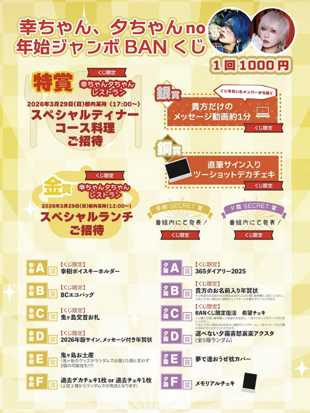 ★夕霧SECRET賞 【くじ限定】番組内にて発表