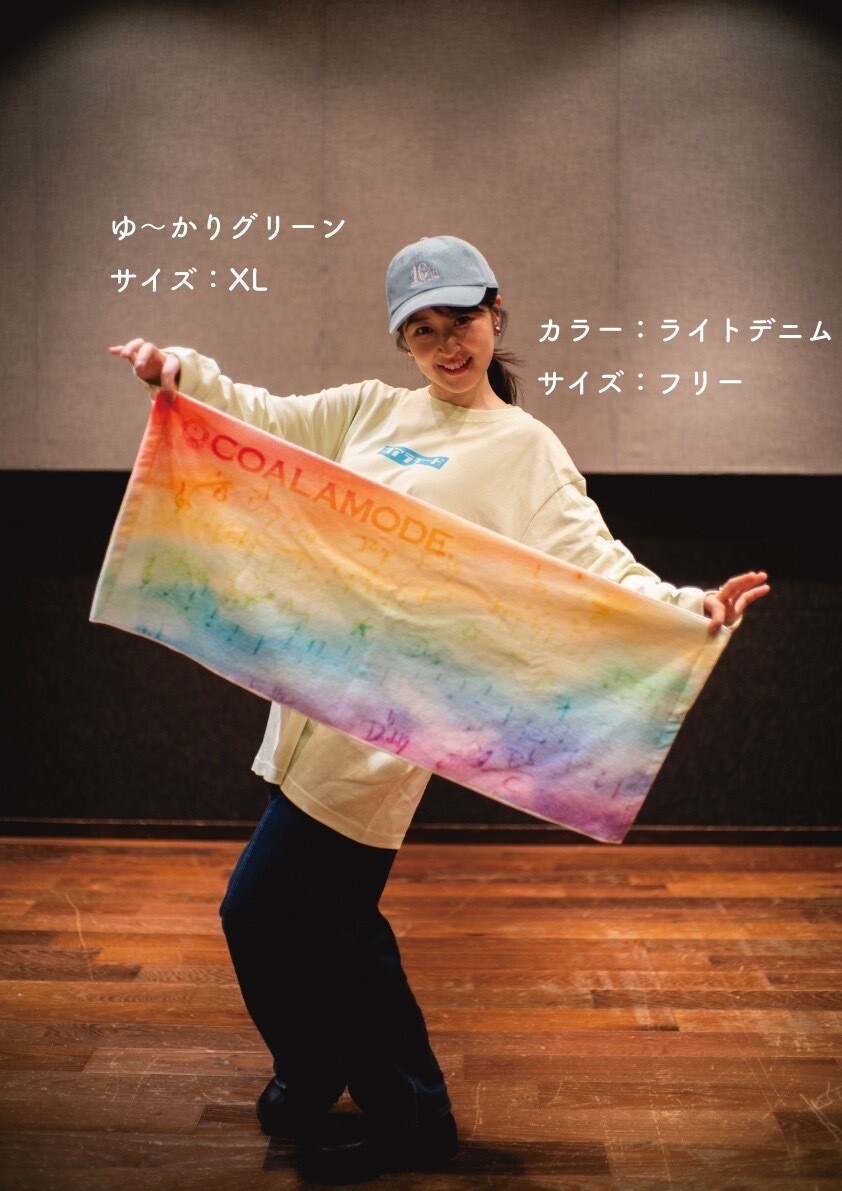 七色の鮮やかなプリントに、小幡の手書き譜面&あんにゅのイラストが散りばめられた