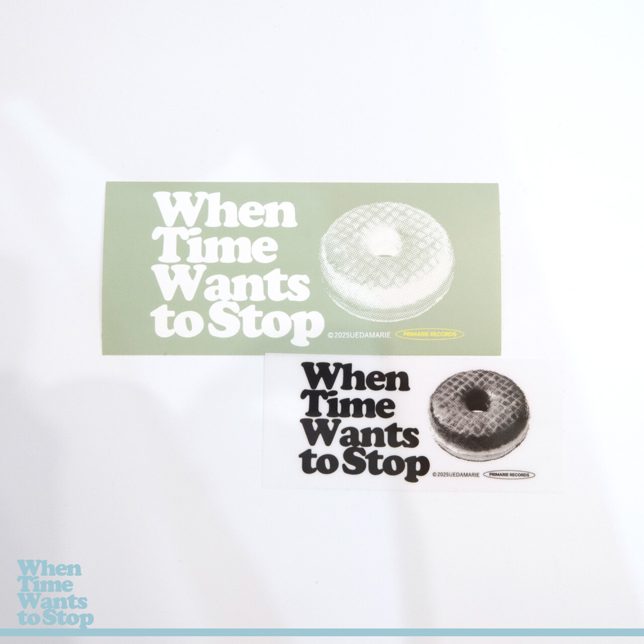 フラットポーチとおそろいのくすみグリーンと透明クリアなロゴステッカーの2枚セットです。