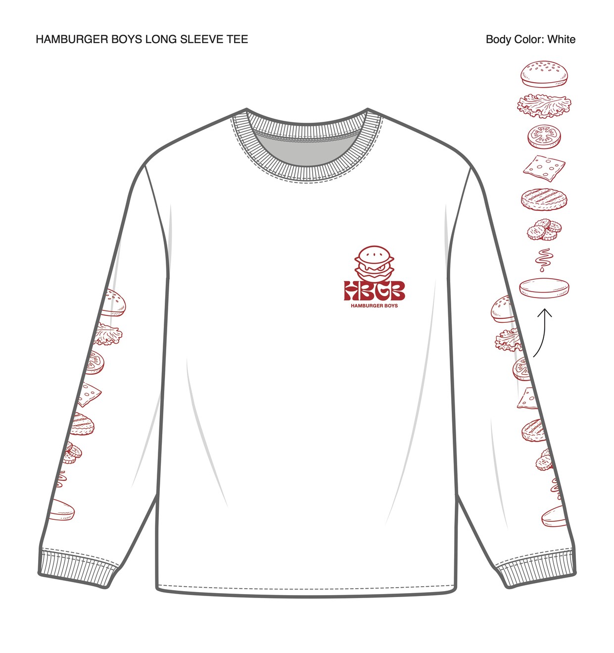 コンセプトはハンバーガーボーイズを表すHBGBという名の架空のハンバーガーショップのTシャツ!