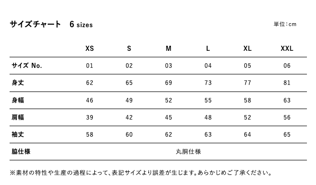 サイズL:身丈 73cm × 身幅 55cm × 肩幅 48cm × 袖丈 63cm