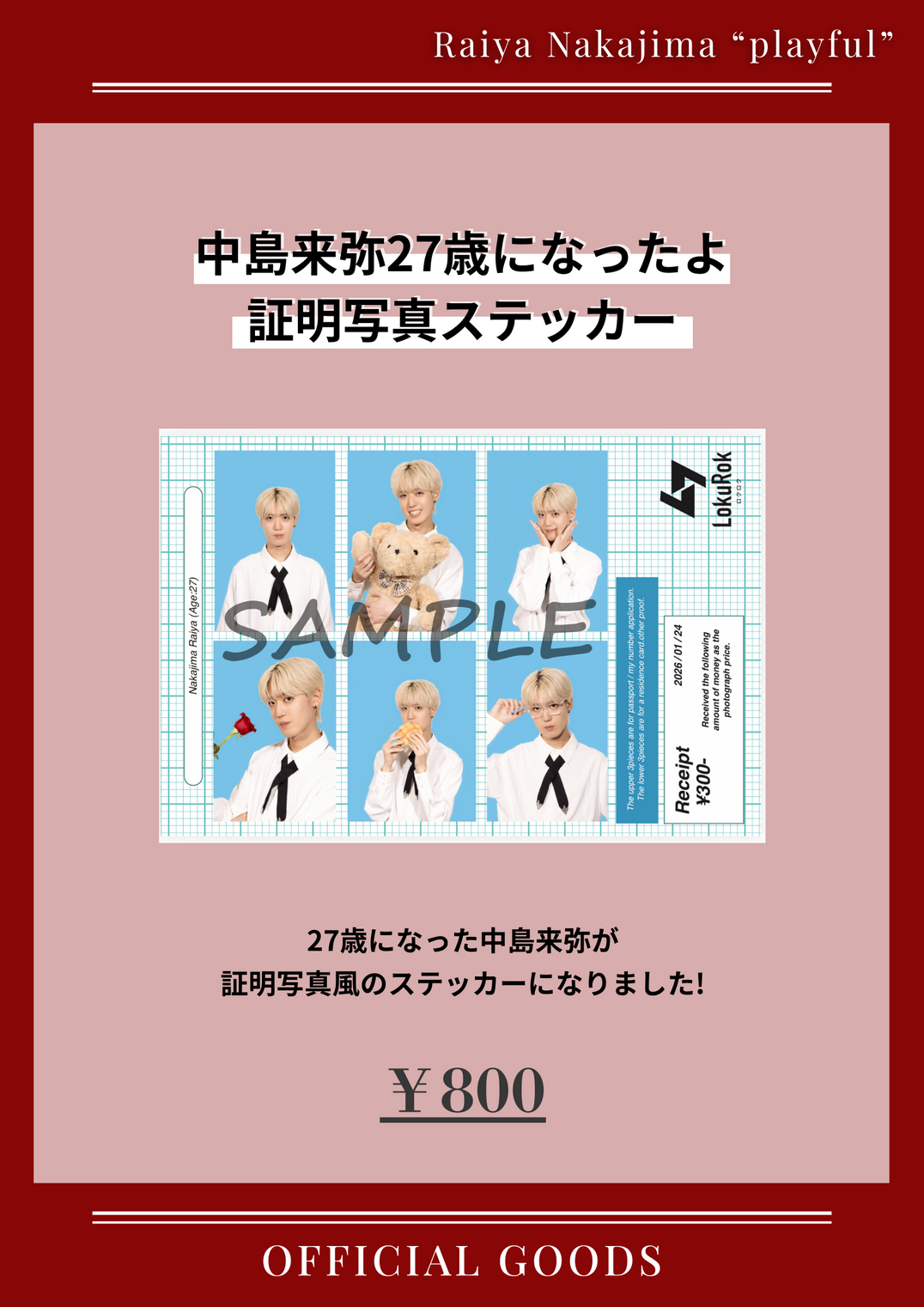 中島来弥の証明写真風のステッカーです!