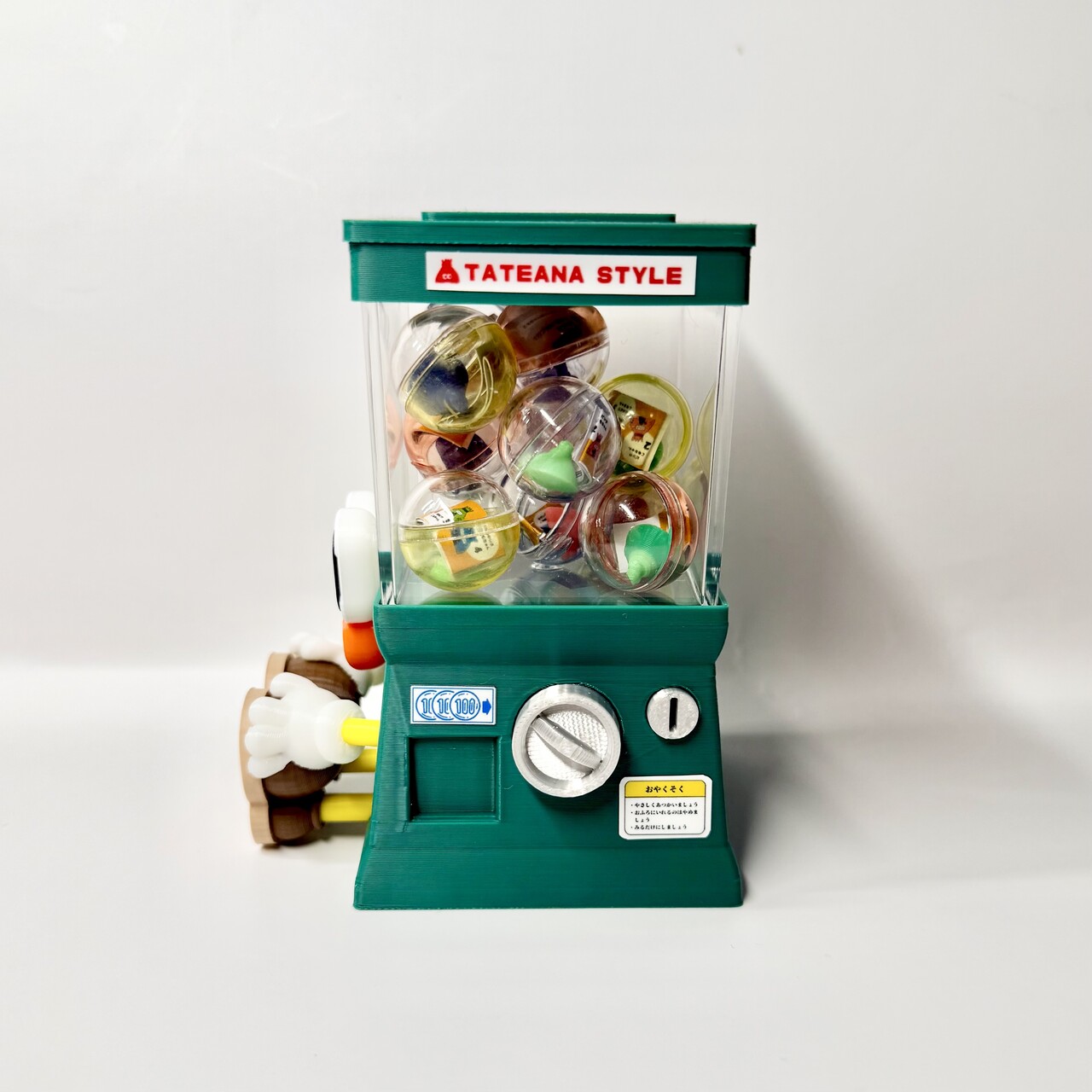 ハンドルは回りません、中のカプセルも取り出せませんので観賞用としてお楽しみください。