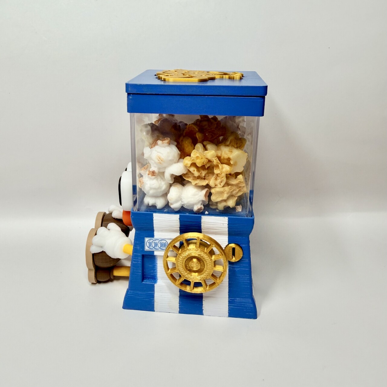ハンドルは回りません。中のポップコーンも取り出せません。