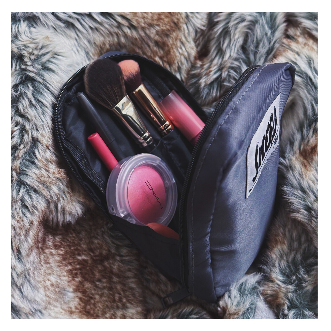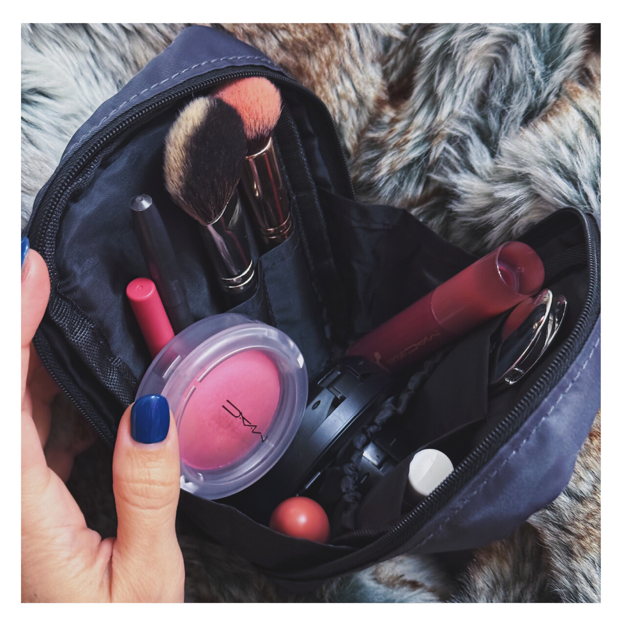 ダブルファスナーが下までついているため、ガバっと開けて中身もとても見やすいポーチです。
