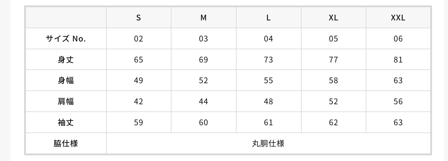 サイズ表は写真をスクロールして3枚目にございます。