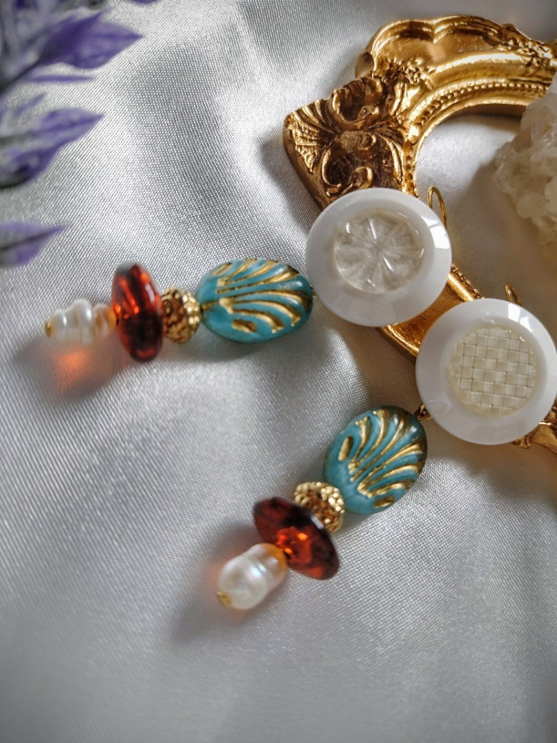 フレンチフックピアス(ステンレス)/ネジばねイヤリング(真鍮)/フープイヤリング(合金)/ヴィンテージボタン/チェコビーズ/アクリルビーズ/淡水パール
