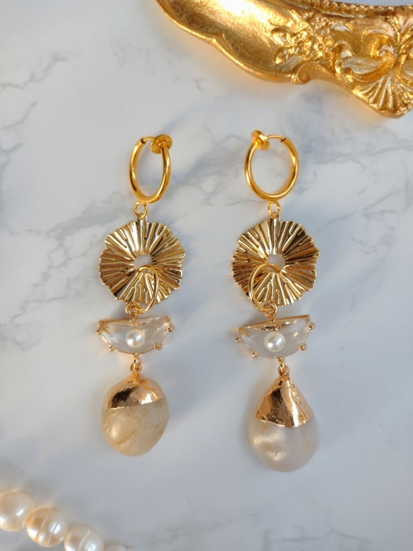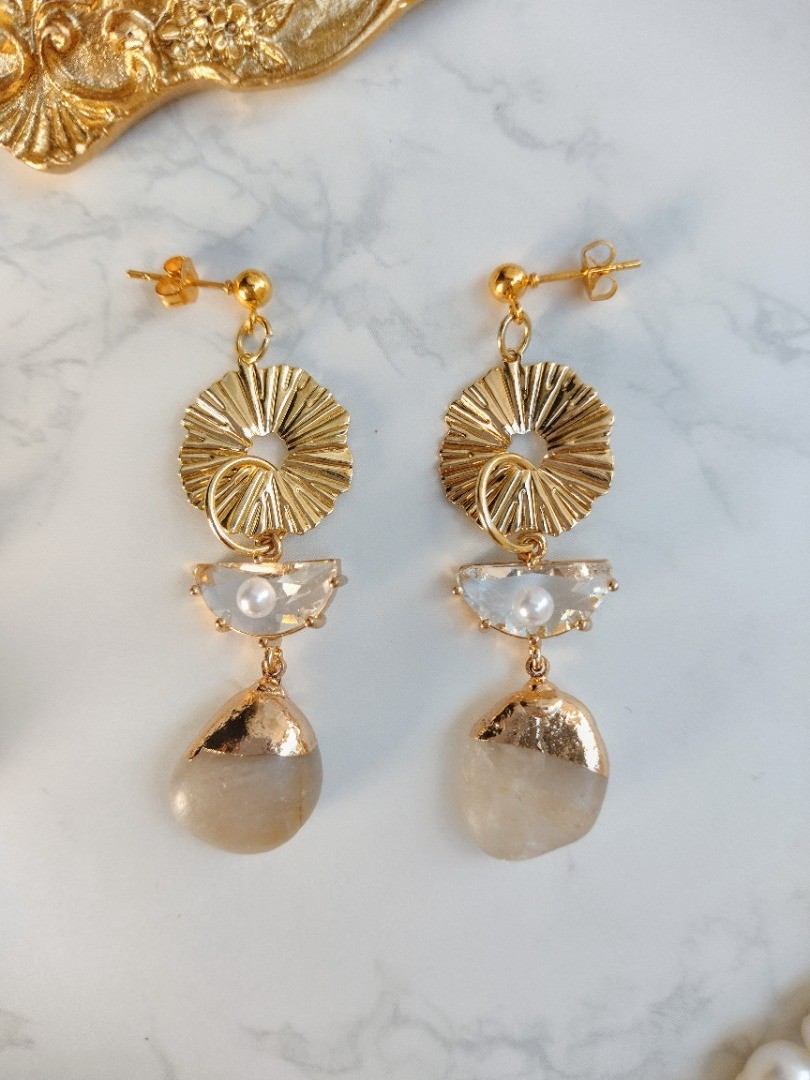 You can change pierced earrings to gold color clip-on earrings of fourth or fifth image free of charge. If you want to change it please message our shop after purchase.