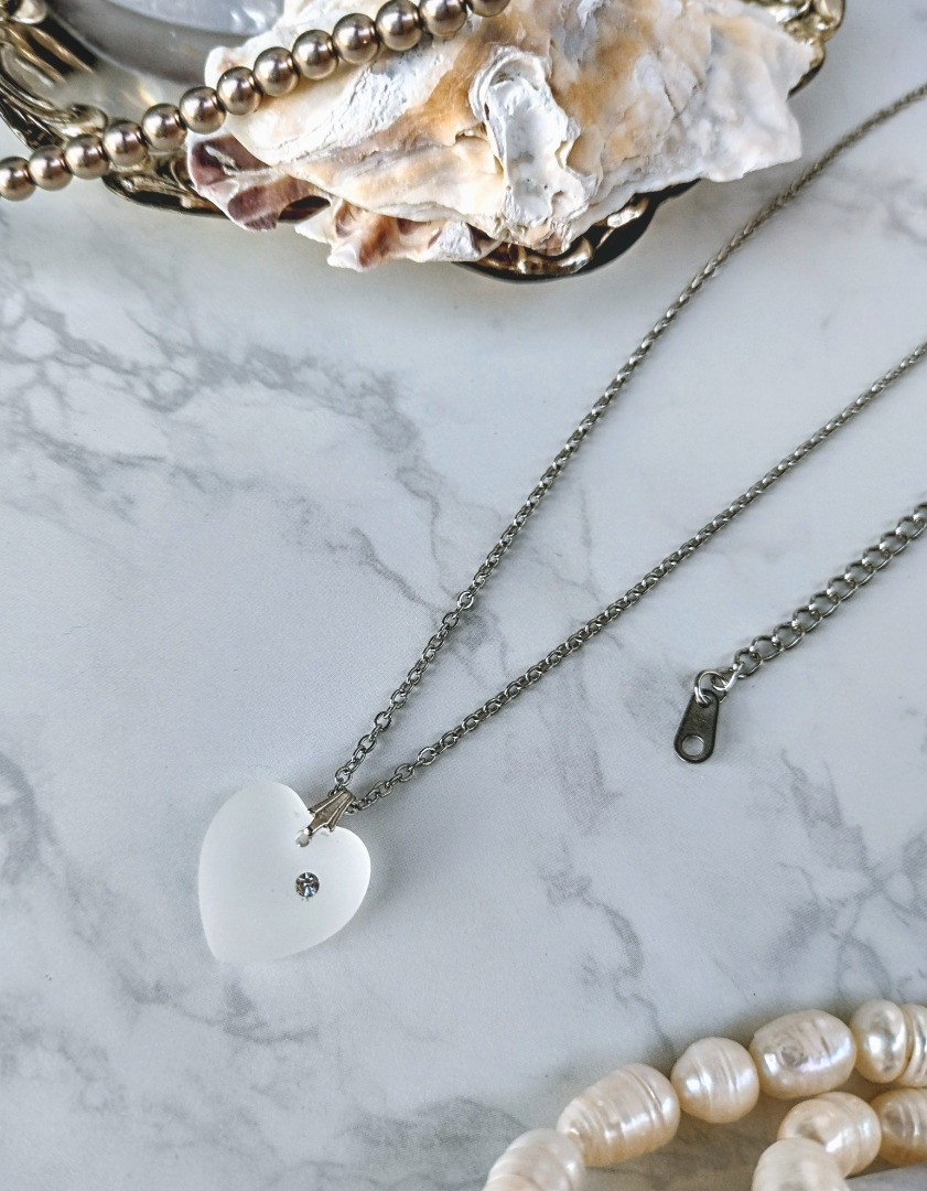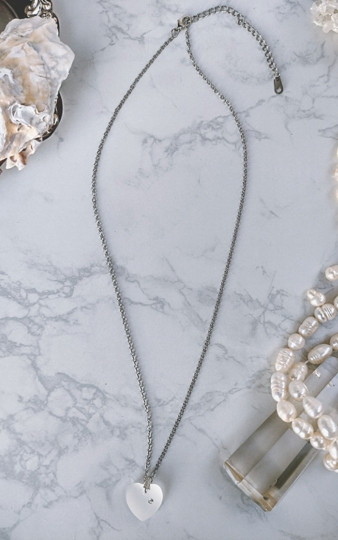 Frosted glass heart necklace