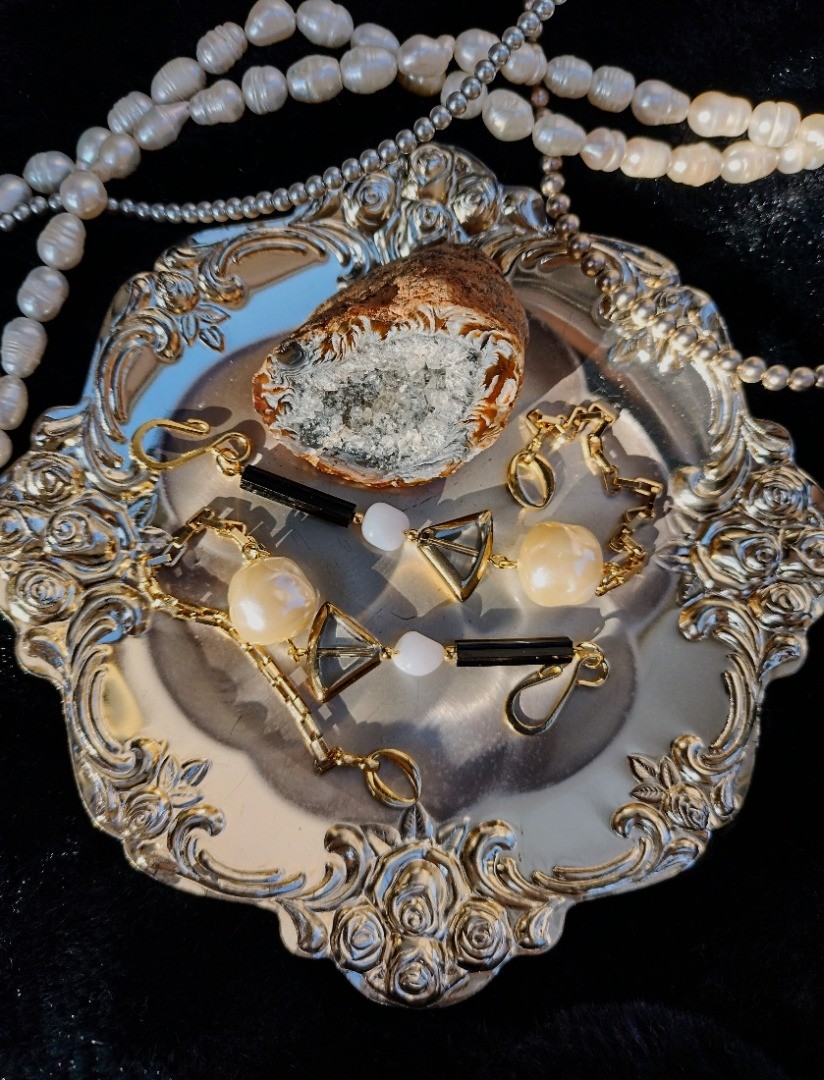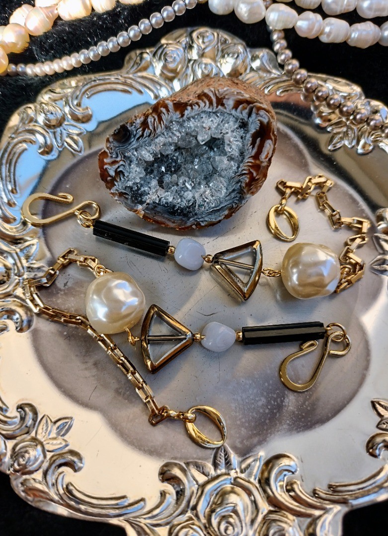ころんとした大粒のヴィンテージバロックパールビーズが、手元をほのかな輝きとともに飾り立てます。