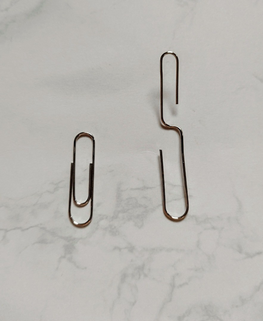 付属のクリップを画像4枚目の右側の形状となるように開いて変形させ、輪の留め具に通して手首にぐるりと回しながら着用いただくとスムーズです。