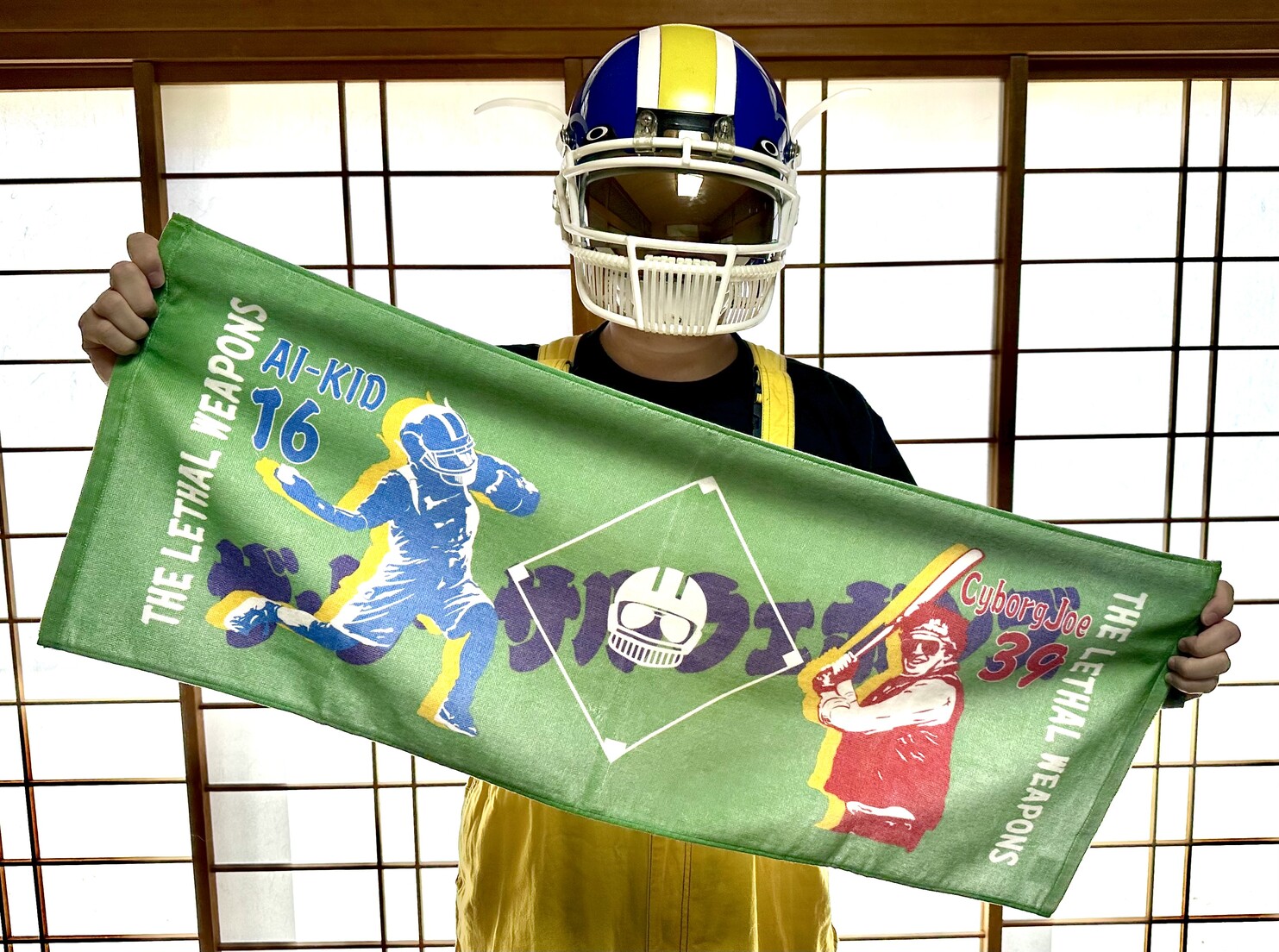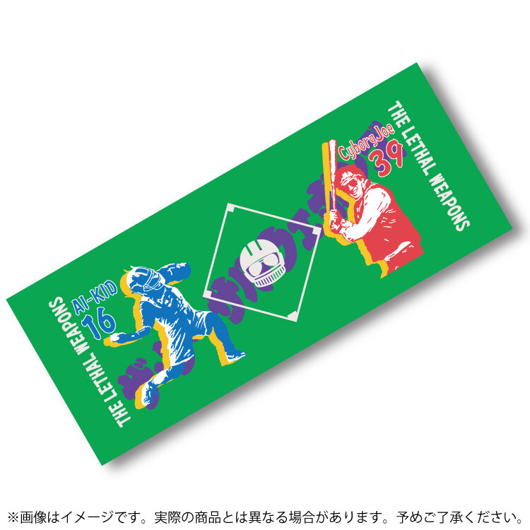 鮮やかな芝生広がる球場を彷彿とさせる、かっとばせ!ポンズ野球なフェイスタオル。