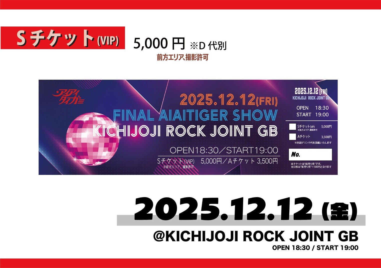前売りSチケット(VIP):5,000円(+1D)