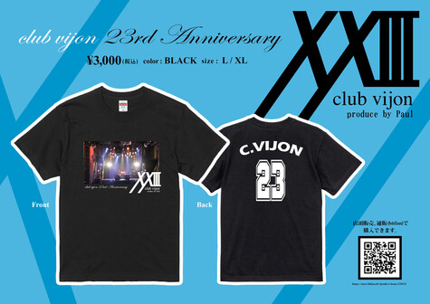 【通販】vijon 23周年 Tシャツ 店舗を胸にTシャツ <size L,XL /color Black>