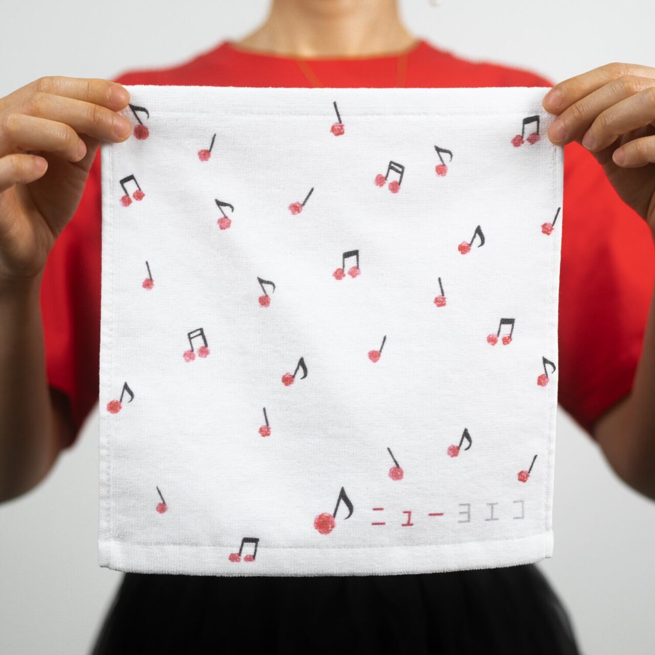 薔薇のアイコンが降っているプリントハンドタオルです。